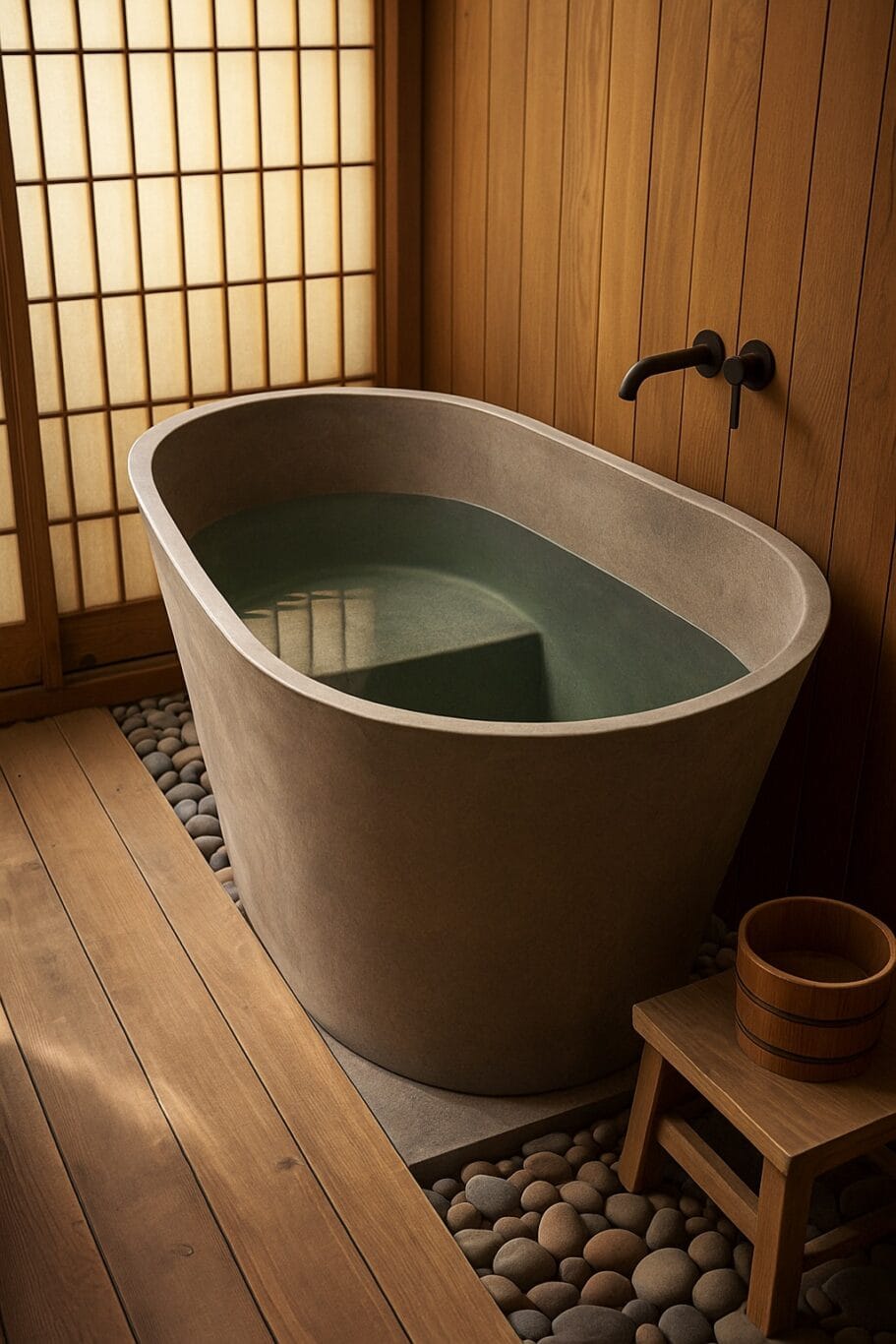 Inspired by Japanese bathing rituals, the TAO soaking tub transforms water into a moment of mindfulness.